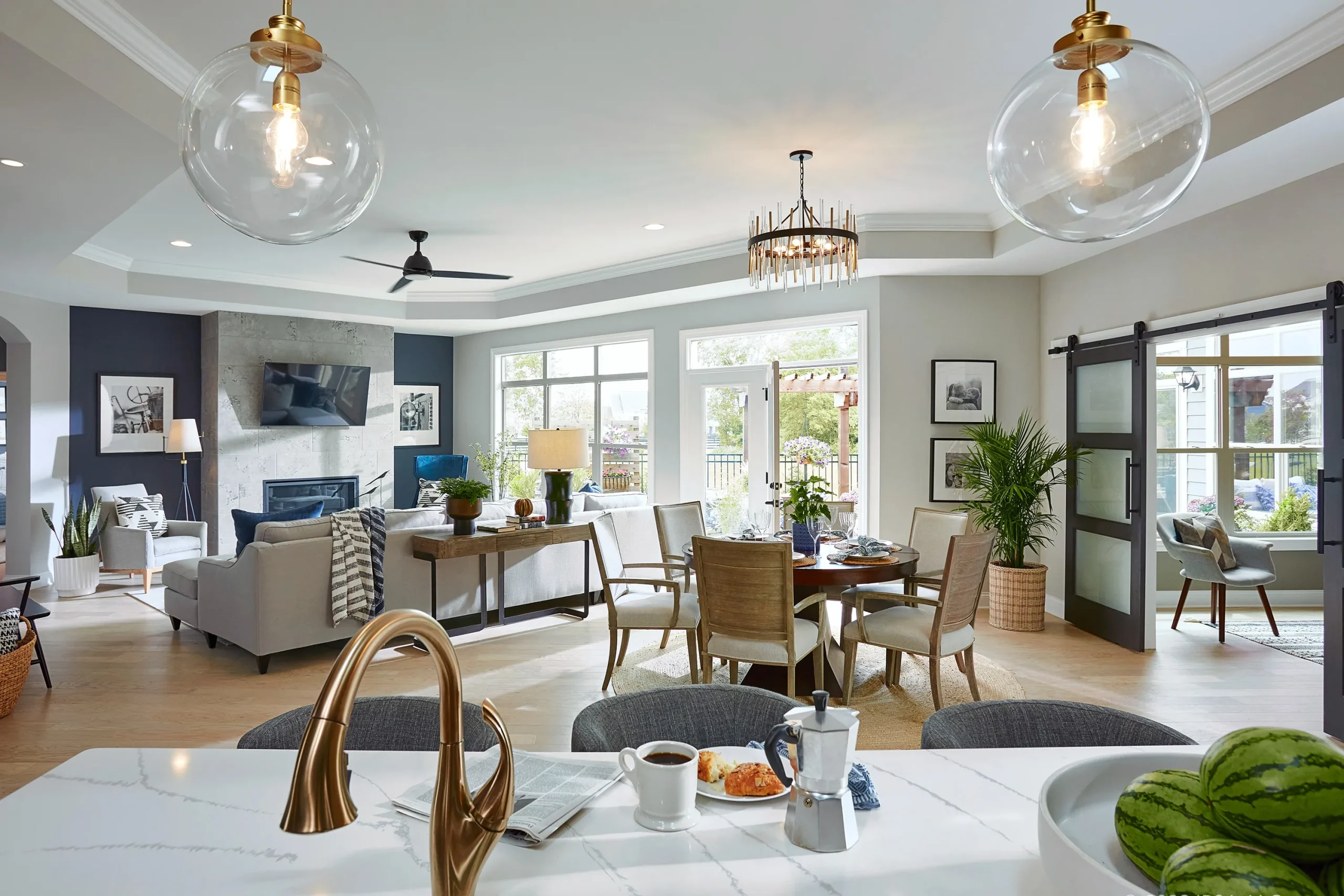 - Pocket door atau barn door style menghemat swing space