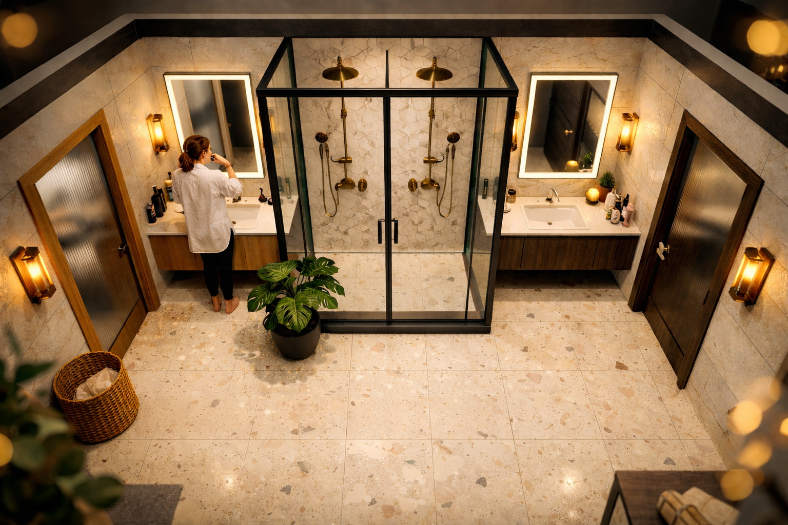 • Wastafel ganda atau area wastafel terpisah agar kedua penghuni bisa bersiap secara bersamaan di pagi hari